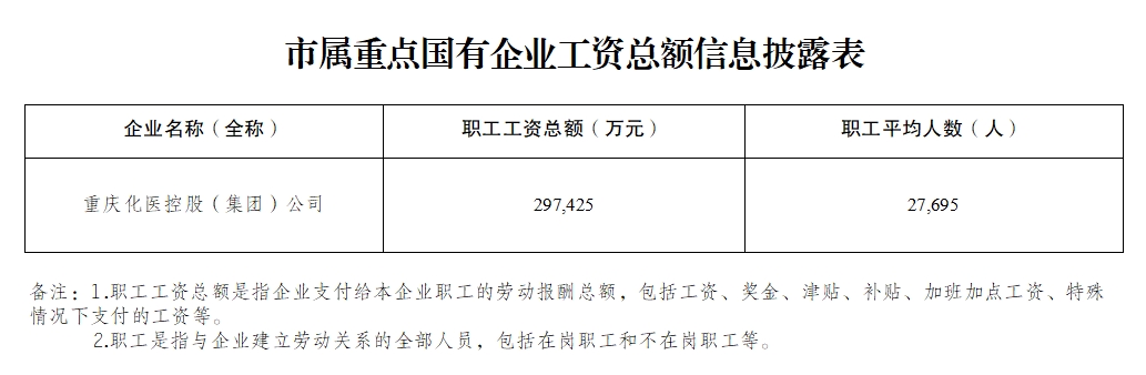 2024年重慶化醫(yī)集團(tuán)工資總額披露表