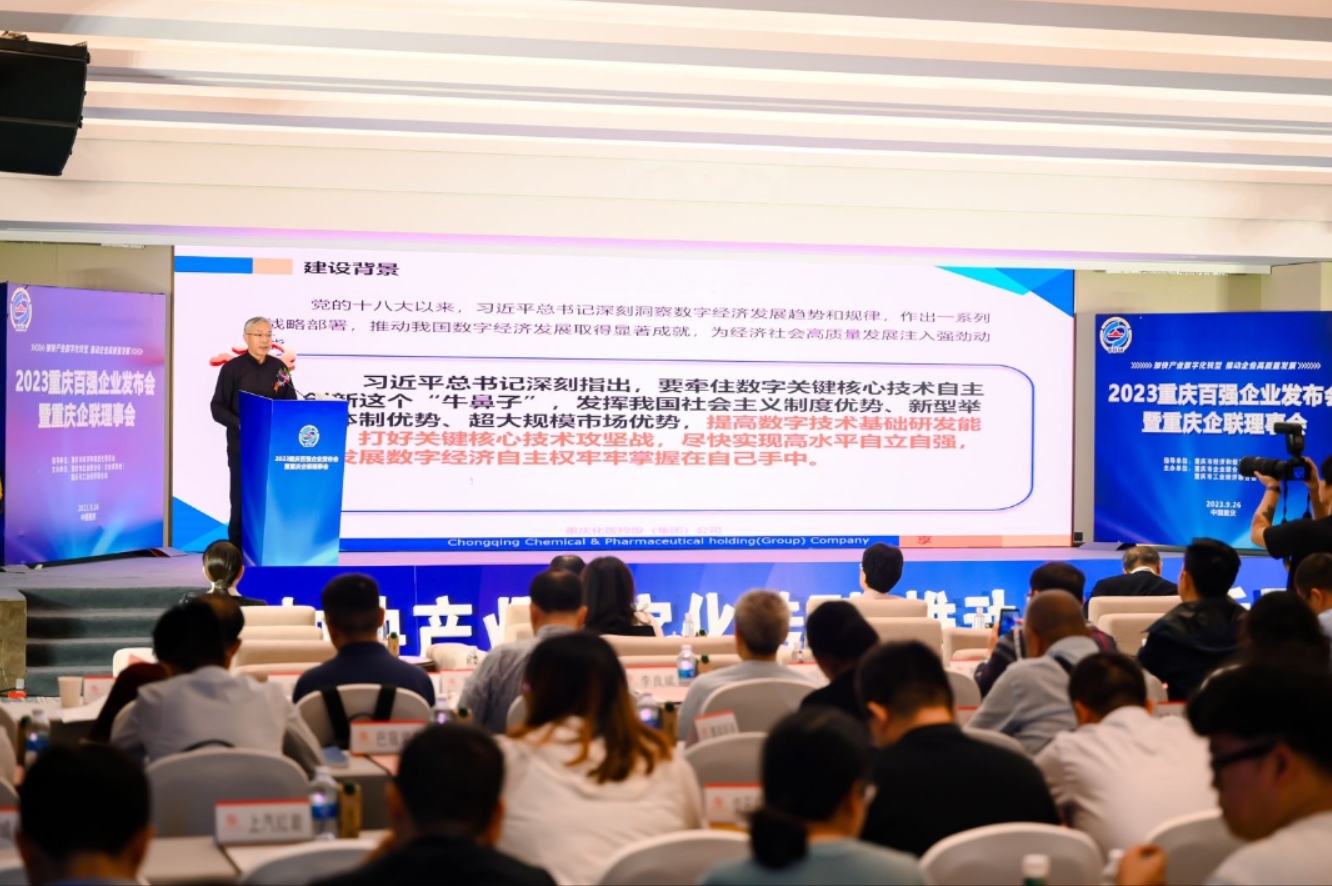 9月26日,市企業(yè)聯(lián)合會(huì)(企業(yè)家協(xié)會(huì))召開(kāi)發(fā)布會(huì),公布2023重慶百?gòu)?qiáng)企業(yè)榜單。重慶化醫(yī)集團(tuán)位列2023重慶企業(yè)100強(qiáng)第4和制造業(yè)企業(yè)100強(qiáng)第3,集團(tuán)黨委副書(shū)記、總經(jīng)理曾中全受邀出席發(fā)布會(huì)并作主旨演講。