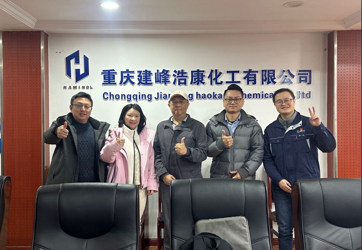 1月27日,臺(tái)灣椿樺化學(xué)股份有限公司客商代表團(tuán)一行到訪建峰浩康,開(kāi)展專(zhuān)項(xiàng)考察交流活動(dòng)